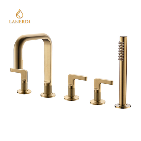 LanerdiUPC真ちゅう製クローム仕上げデッキマウントバスタブ蛇口ハンドシャワー付き