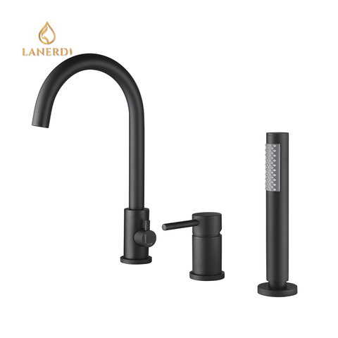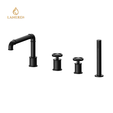Lanerdi4pcs4穴マットブラックUPCデッキマウント真ちゅう製バスタブ蛇口
