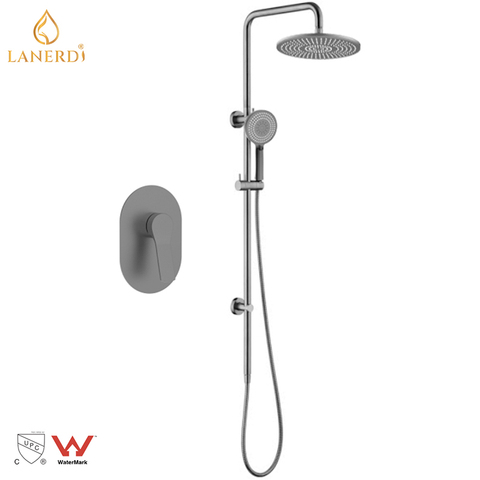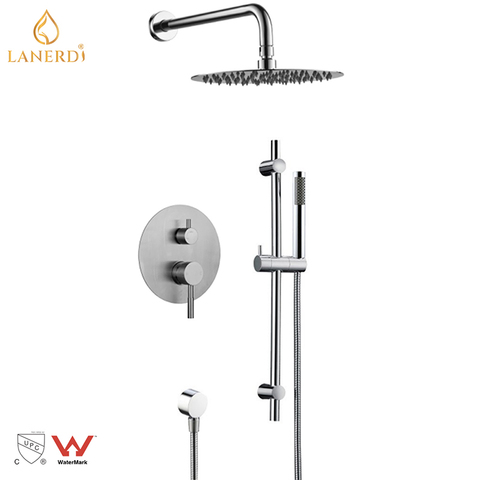 Cupc ฝักบัวสแตนเลสทรงกลมแบบมีที่จับสองอันระบบฝักบัวแบบซ่อนพร้อมฝักบัวแบบใช้มือจับแบบเกลียวในผ้าซาติน