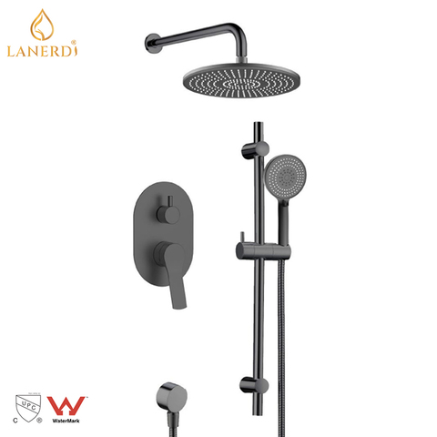 Watermark cupc หัวฝักบัวทรงกลมทองเหลืองสีดำระบบฝักบัวติดผนังพร้อมสไลด์บาร์ฝักบัวมือถือสำหรับห้องน้ำอพาร์ตเมนต์