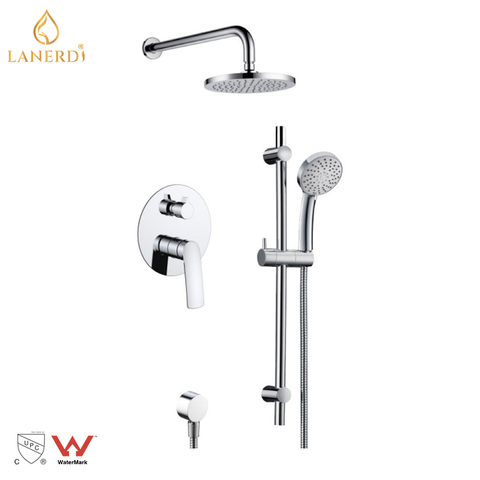 Cupc ชุดฝักบัวสแตนเลสติดผนังแบบกลมหัวฝักบัวแบบปกปิดลายน้ำพร้อมรางในห้องน้ำ