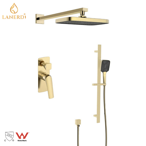 Cupc ระบบฝักบัวอาบน้ำทองเหลืองทรงสี่เหลี่ยมกันน้ำกันน้ำกันฝนด้านบนพร้อมรางมือจับเดี่ยวชุดฝักบัวห้องน้ำสีทอง