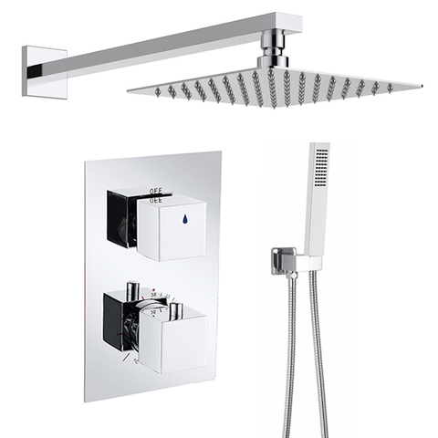 WRAS termostatico doccia a scomparsa in ottone quadrato a pioggia sistema doccia con guida portatile bagno doccia Set sistema in cromo