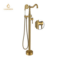 [Bán buôn chỉ] cổ điển dual-xử lý Brass tắm vòi Vàng miễn phí đứng freestanding mềm phun Chải Bồn tắm vòi nước