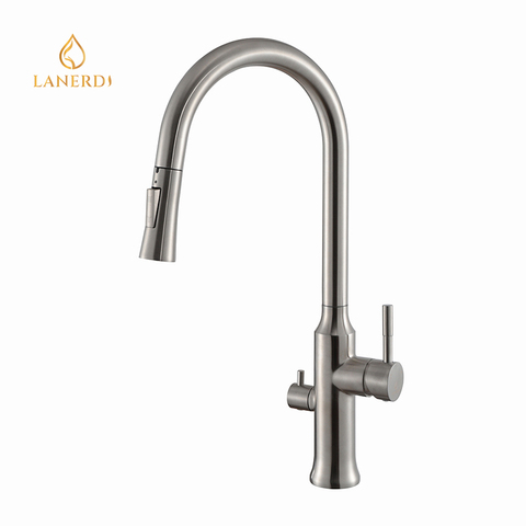 Robinet de cuisine 3 voies en nickel brossé Robinet mitigeur avec pulvérisateur à ressort