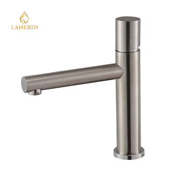 Torneira de Lavabo Contemporânea em Aço Inoxidável 304 Escovado, Misturador de Um Furo com Manípulo Único e Núcleo de Válvula Cerâmica